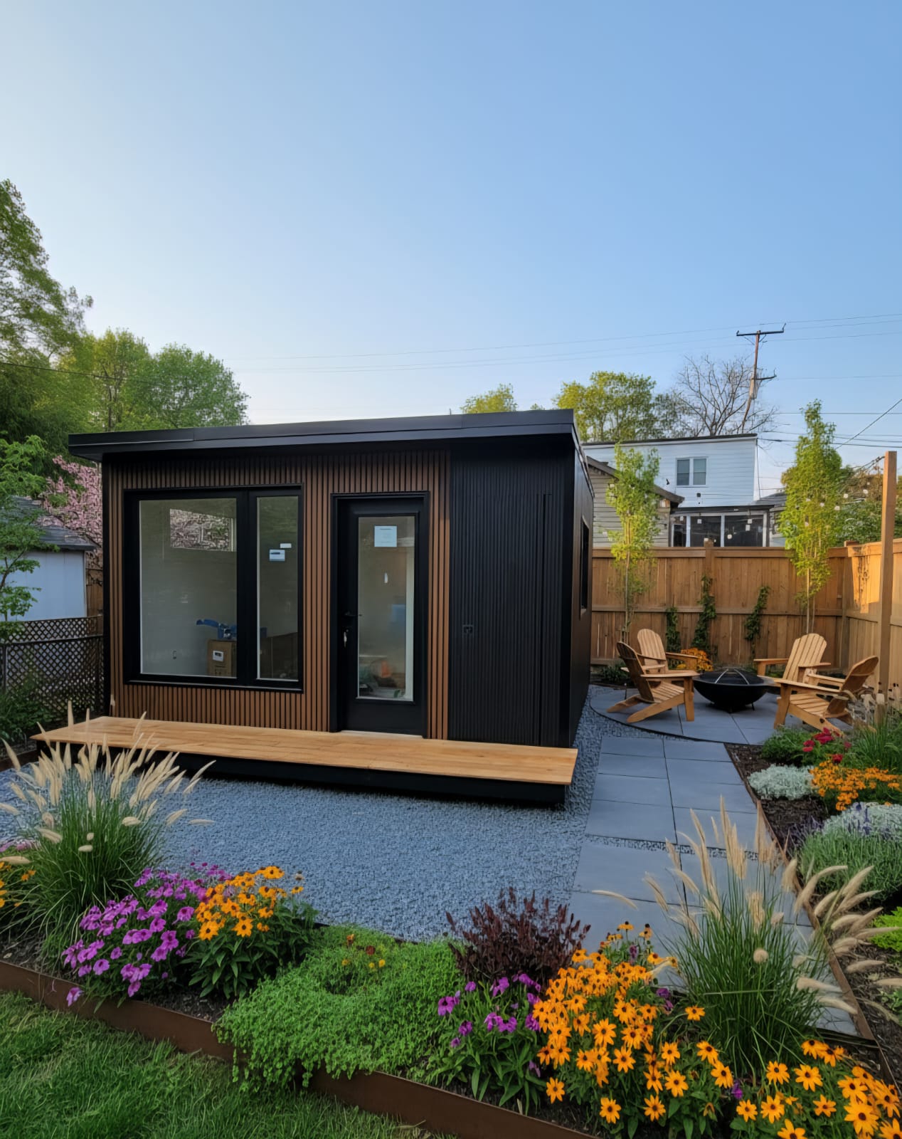 This custom 11x14 ft Garden Haus unit was thoughtfully designed to serve as a versatile backyard retreat with integrated storage. Built fully on-site, the structure features all-season insulation, a sleek modern design, and a dedicated storage section seamlessly built into the layout—perfect for tools, seasonal items, or outdoor equipment.